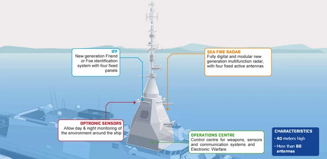 Belharra’s distinguishing feature lies not in the individual presence of its sensors, but in the reliability of the tactical picture they collectively generate. The AESA main radar architecture is intended to meet modern demands such as dense track generation and dynamic target tracking.